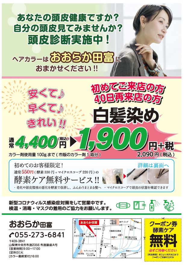 カラー16:00 カット16:30 パーマ15:00 カラーカット15:30 シャンプー・ブロー16:30